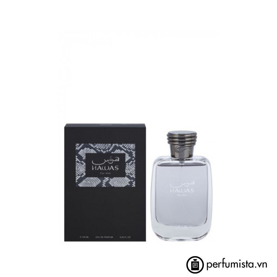 Đây là dòng nước hoa Rasasi thuộc nhóm Aromatic Aquatic (Hương thơm biển). Hawas for Him được cho ra mắt vào năm 2015. Bên cạnh đó, Hương của nước và Long diên hương là hai hương bạn có thể dễ dàng cảm nhận được nhất khi sử dụng nước hoa này.