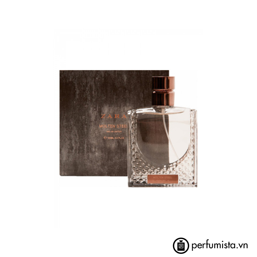 Đây là dòng nước hoa Zara thuộc nhóm Citrus Aromatic (Hương cam chanh thơm ngát). Molten Steel được cho ra mắt vào năm 2018. Bên cạnh đó, Cây xô thơm và Hổ phách là hai hương bạn có thể dễ dàng cảm nhận được nhất khi sử dụng nước hoa này.
