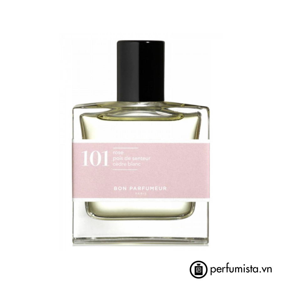 Đây là dòng nước hoa Bon Parfumeur thuộc nhóm Floral (Hương hoa cỏ). 101 rose, sweet pea, white cedar được cho ra mắt vào năm 2017. Bên cạnh đó, Hoa hồng Thổ Nhĩ Kỳ và Chiết xuất gỗ tuyết tùng trắng là hai hương bạn có thể dễ dàng cảm nhận được nhất khi sử dụng nước hoa này.