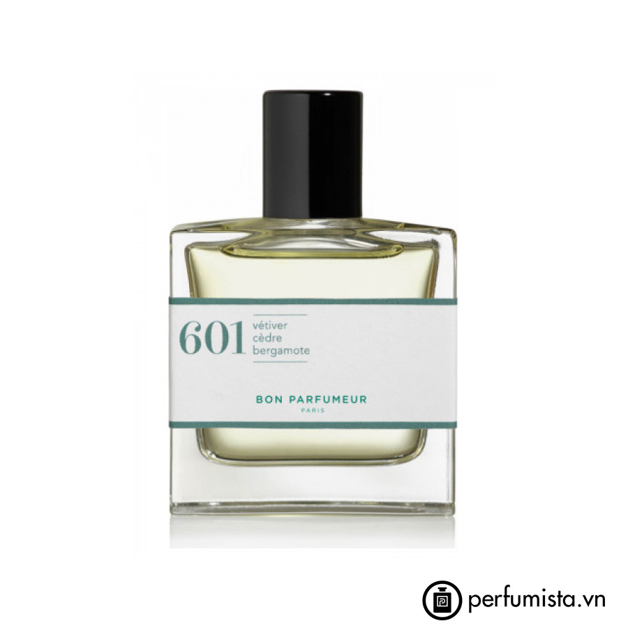 Đây là dòng nước hoa Bon Parfumeur thuộc nhóm Woody Spicy (Hương gỗ cay nồng). 601 vetiver, cedar, bergamot được cho ra mắt vào năm 2017. Bên cạnh đó, Cỏ hương bài và Gỗ tuyết tùng là hai hương bạn có thể dễ dàng cảm nhận được nhất khi sử dụng nước hoa này.